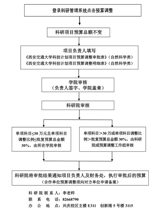 纵向科研项目预算调整(一般事项)办理流程(自然科学类)